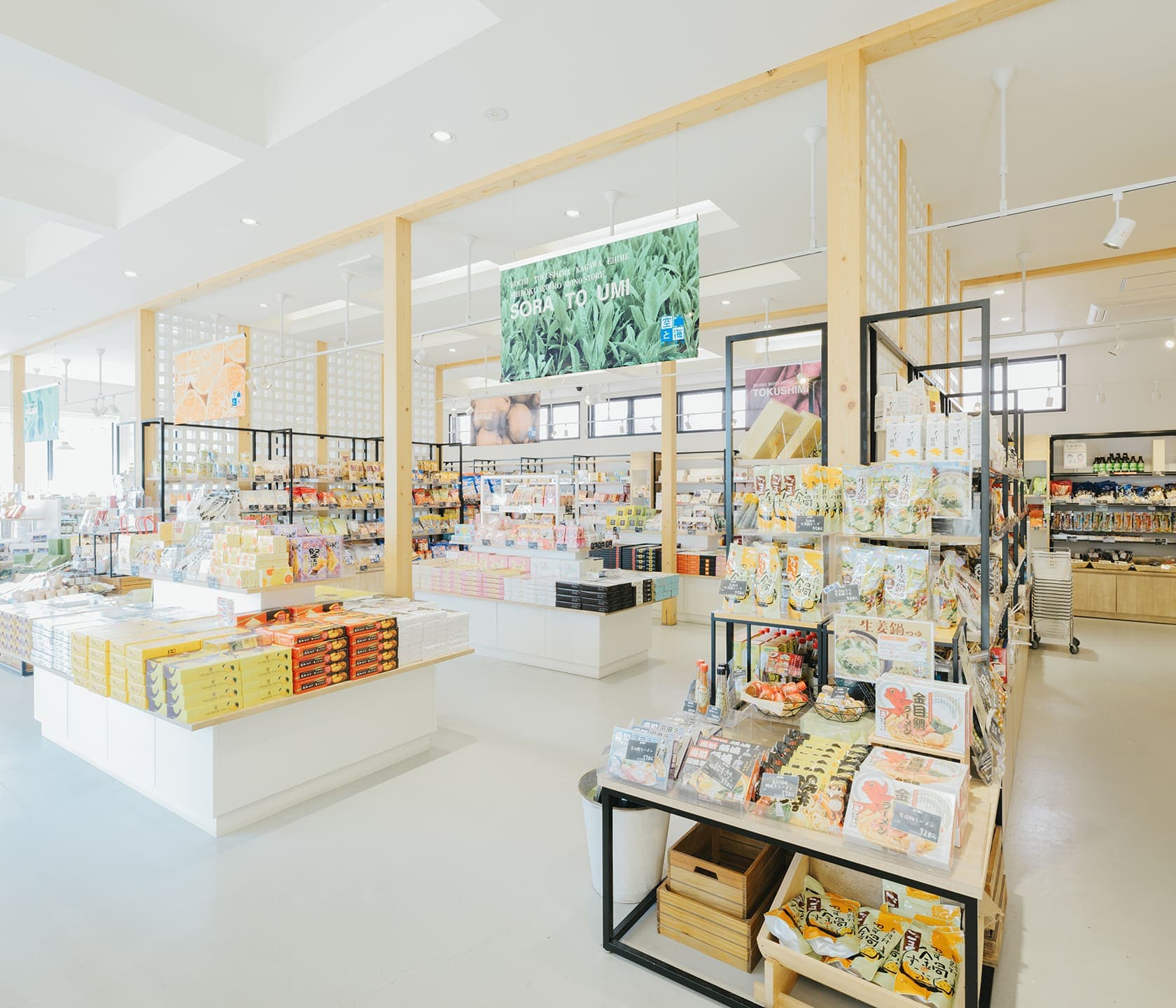高知県は、太平洋に面した雄大な自然と豊かな食文化が魅力の地。四万十川の清らかな流れや黒潮が育む海の幸をはじめ、四国各地の特産品を揃えたのが「空と海」です。